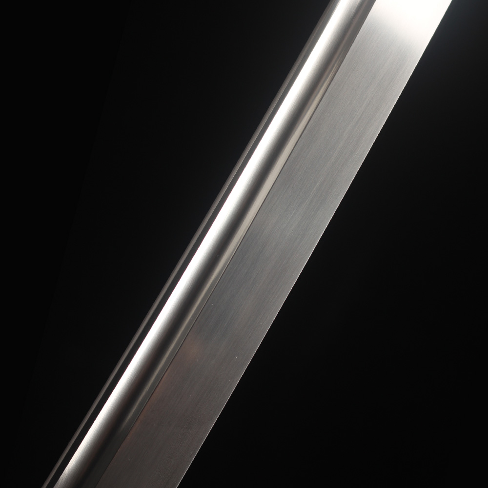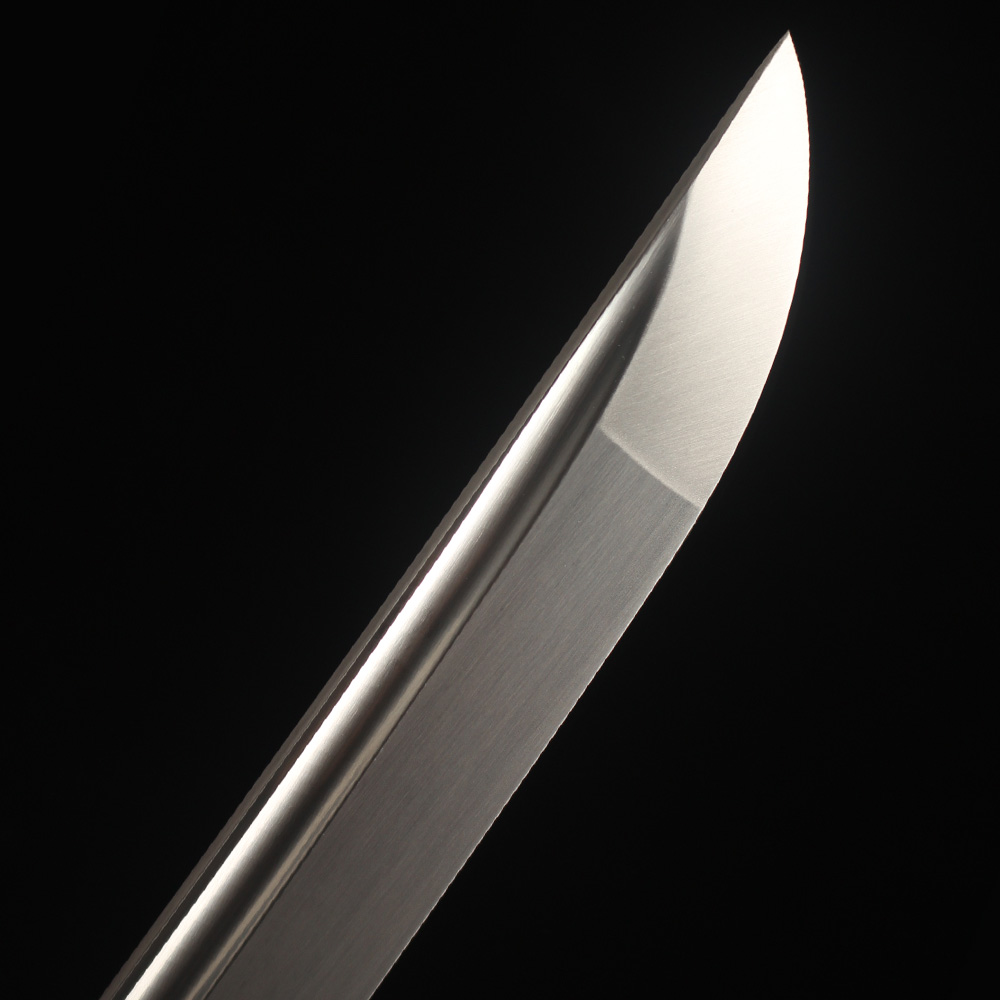 The blade has a long Hi (blood groove) on each side, this not only allows for a lighter blade and audible feedback when swung, but also can balance the blade to achieve optimal performance. The tip of the blade is a Chu Kissaki (medium length).This blade has been hand polished with multiple grade sharpen stone by Japanese method, which made the surface of the blade like a mirror, the blade is also very sharp.This blade comes with a full length Tang which greatly enhances the strength of the sword. this sword is strong enough to cut through a thick bamboo tree with a single strike yet sharp enough to slice paper.