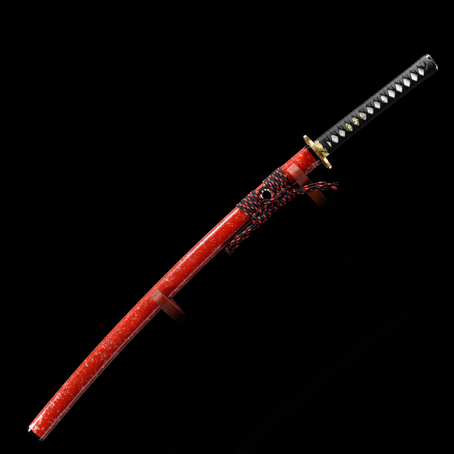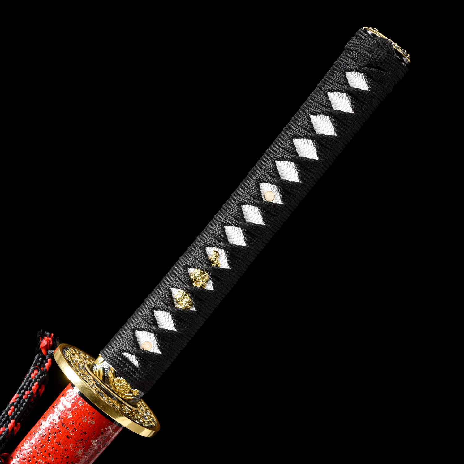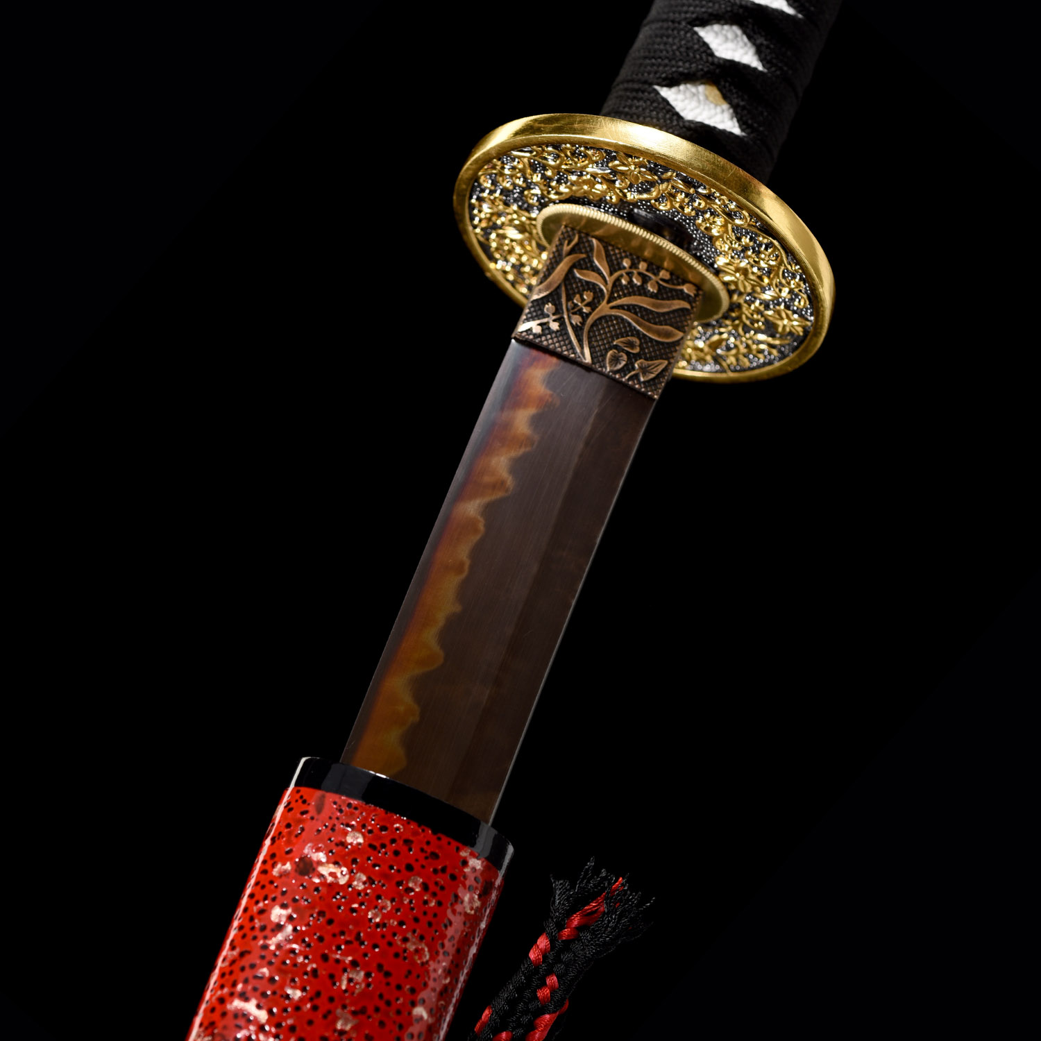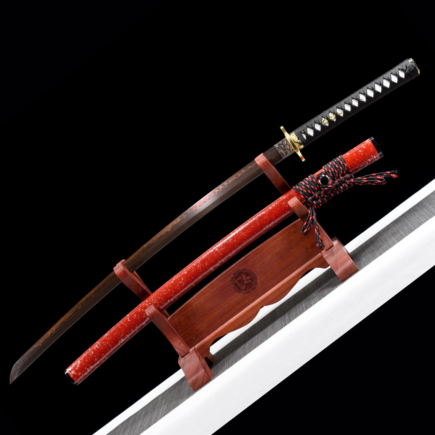 • Unique and striking red t10 steel blade, full-tang battle ready japanese katana samurai sword.