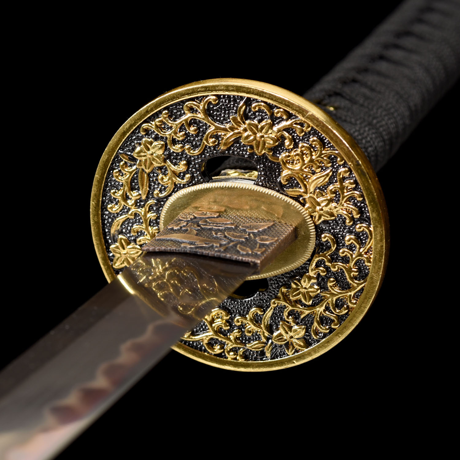 TSUBA: The Tsuba (guard) of the sword is made of zinc alloy. The Habaki (blade collar) is a one piece brass construction. Two Seppas (spacer) secure the Tsuba.