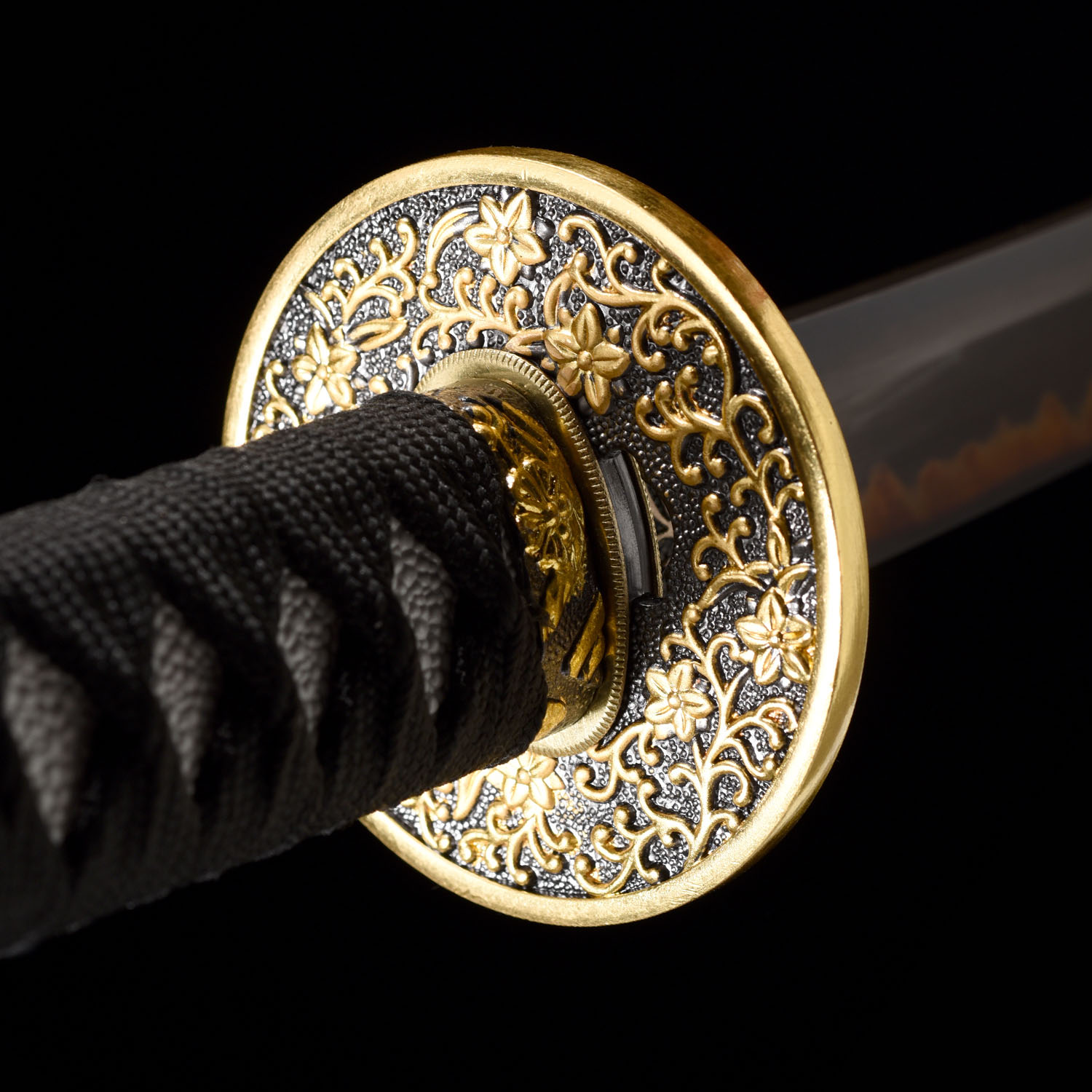 The blade is not only allows for a lighter blade and audible feedback when swung, but also can balance the blade to achieve optimal performance. The tip of the blade is a Chu Kissaki (medium length).This blade has been hand polished with multiple grade sharpen stone by Japanese method, which made the surface of the blade like a mirror, the blade is also very sharp. This blade comes with a full length Tang which greatly enhances the strength of the sword. this sword is strong enough to cut through a thick bamboo tree with a single strike yet sharp enough to slice paper.